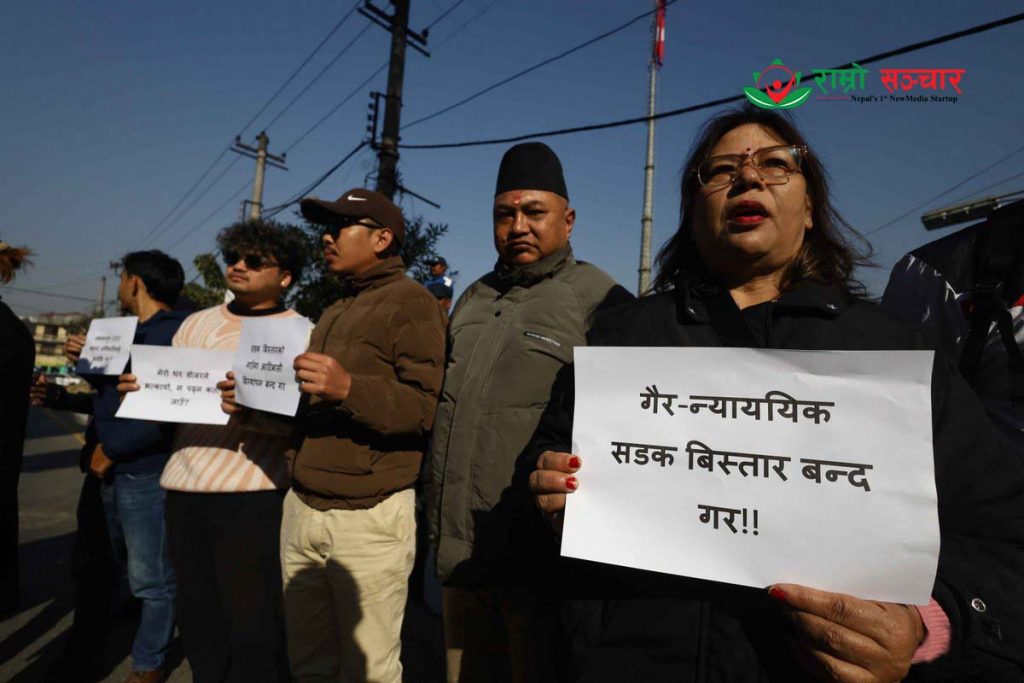 काठमाडौँ । हेटौँडा सडक विस्तारका पीडितहरूले माइतीघरमा बाजा सहित विरोध प्रदर्शन गरेका छन् ।